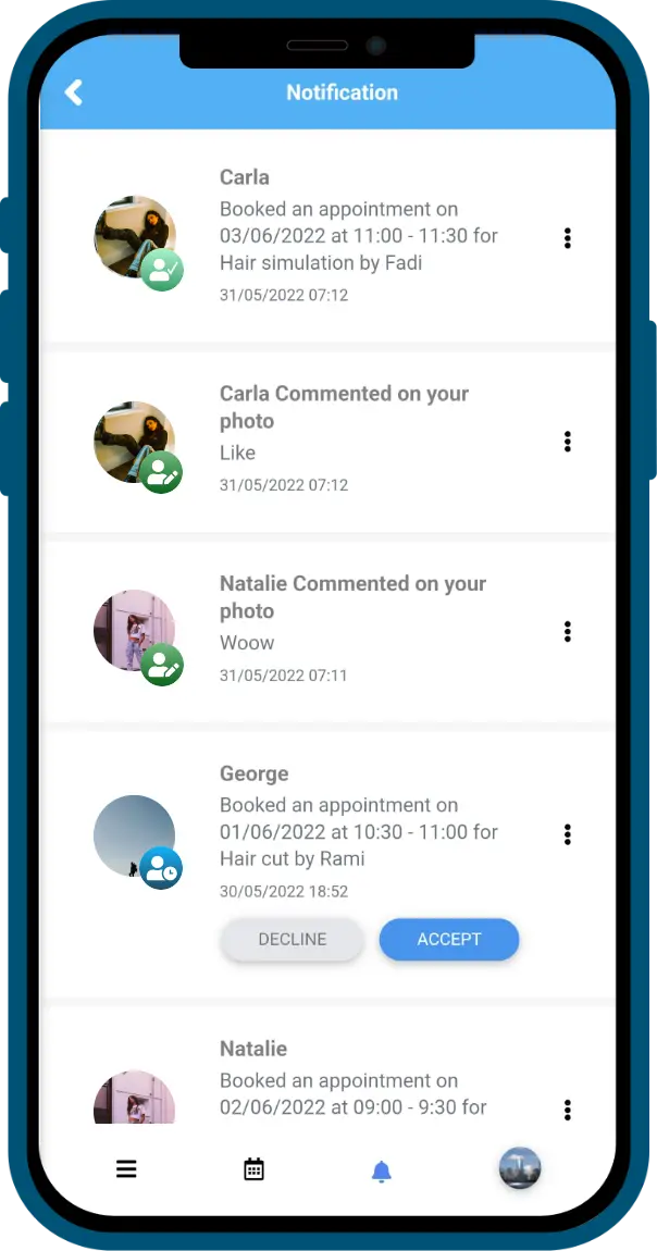 Take control of your own salon and see who from your customers make an appointment so you can choose to accept, auto accept or decline your customers.